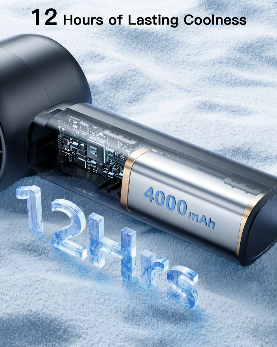 Stay cool anywhere, anytime with the ColdSky Handheld Mini Fan. Designed for ultimate portability, this fan comes with a powerful 4000mAh rechargeable battery that ensures hours of refreshing breeze. With 5 adjustable speed modes and a turbo boost option, you can customize the airflow to your comfort. The sleek LED display shows battery life and speed level, keeping you in control. Lightweight and compact, it’s the perfect travel companion for the beach, vacations, outdoor activities, or daily use.